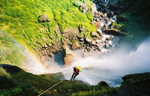 Canyoning in Nepal is one adventure sport that gets you off the beaten track and cannot be missed by the adrenaline seeker and water sports enthusiast when visiting Nepal.Canyoning is the sport of abseiling (repelling) down waterfalls. Whilst Canyoning with us in Nepal, you will journey though narrow passages of rock which have been contoured by ages of rushing water from the Himalayan snow melts and heavy monsoon rains. You will be traveling down canyons using a variety of techniques including walking, scrambling, climbing, cliff jumping, abseiling and swimming.