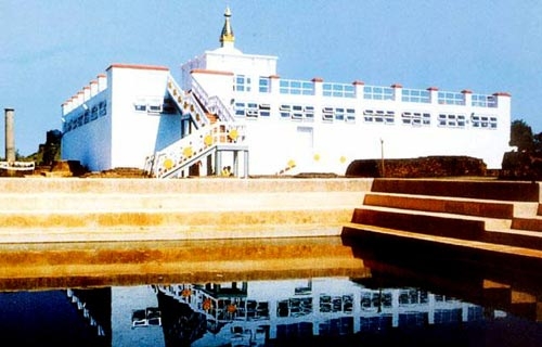 LUMBINI: One of the most important place of Buddhist pilgrimage is Lumbini, located near the Nepal-India border. This is where Gautam Buddha was born to a royal family in 556 B.C.E. Many auspicious signs accompanied the Buddha's birth, including the sprouting of the bodhi tree. The great Buddhist ruler Ashoka visited the site two centuries later, constructing a stupa (mound, usually of earth) and pillar in recognition. Although largely destroyed now, these remain important marks of the Buddha's birthplace.