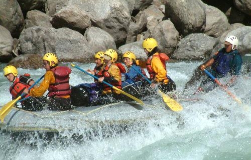 Rafting in white water: