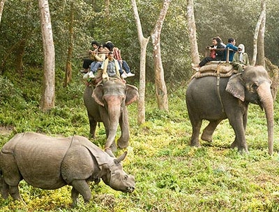 The Park is situated 140 kms south west of the Kathmandu Valley in the fertile Chitwan valley. It covers an area of approximately 932 sq. km. Two rivers, Narayani and Rapti, drain the park. The park covers sub-tropical jungles, elephant grasslands, hilly areas and floodplains. With an average rainfall of about 2,400-mm annually, the Royal Chitwan National Park is a paradise for animals and birds. Some of the rare species of animals found there are the Asian one horned rhino, gharial and mugger crocodiles, leopard and the rare Royal Bengal tiger.